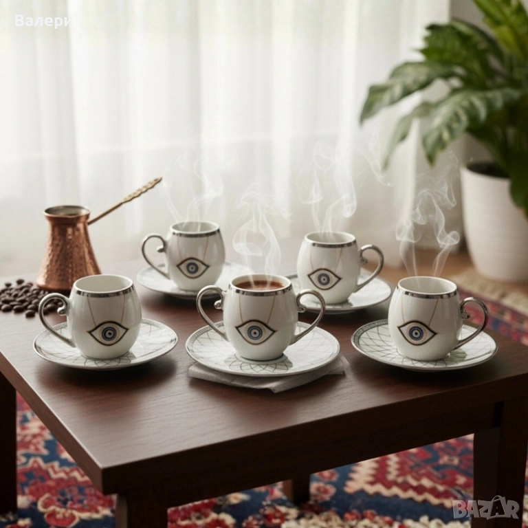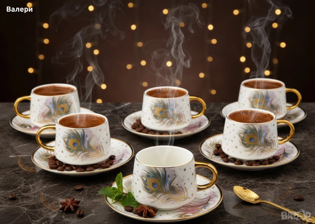 Луксозен сервиз за кафе (6 чаши + 6 чинийки):