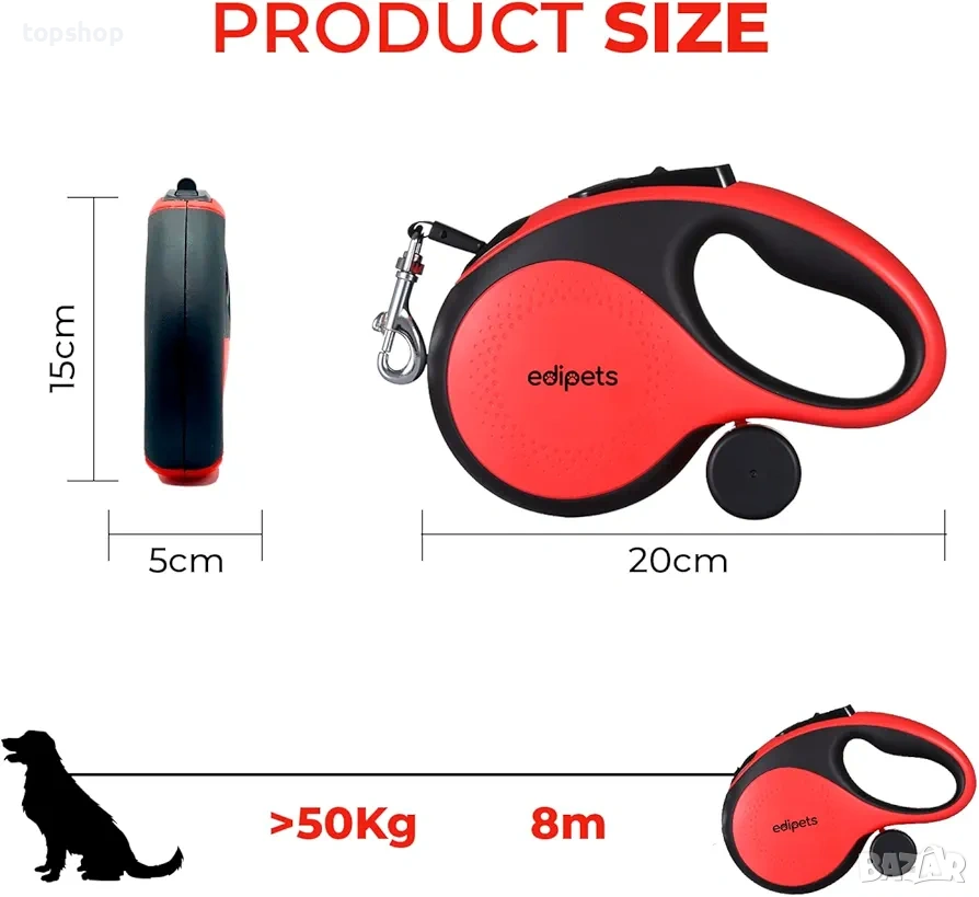 Професионална автоматична каишка Edipets – 8 метра, до 50кг + торбички