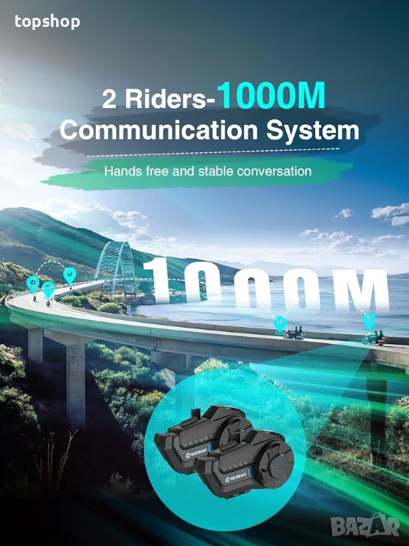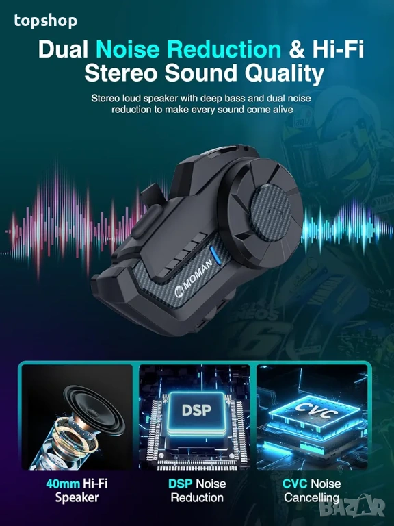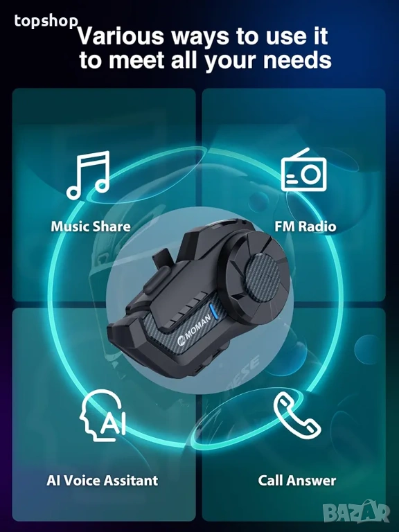 Bluetooth Интерком за Мото Каска MOMAN H2 Чисто нов запечатан