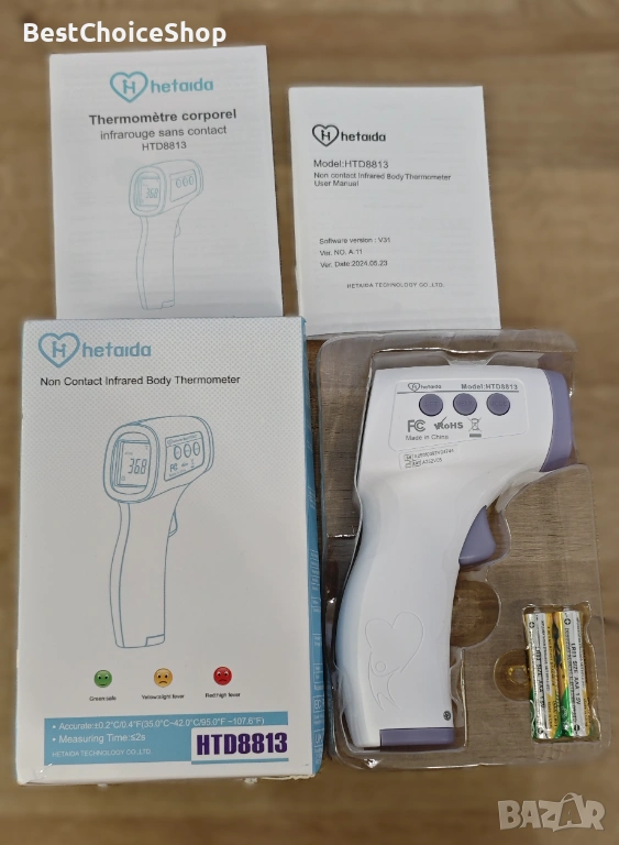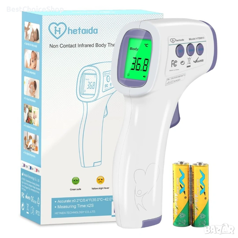 безконтактен инфрачервен телесен термометър Hetaida HTD8813.