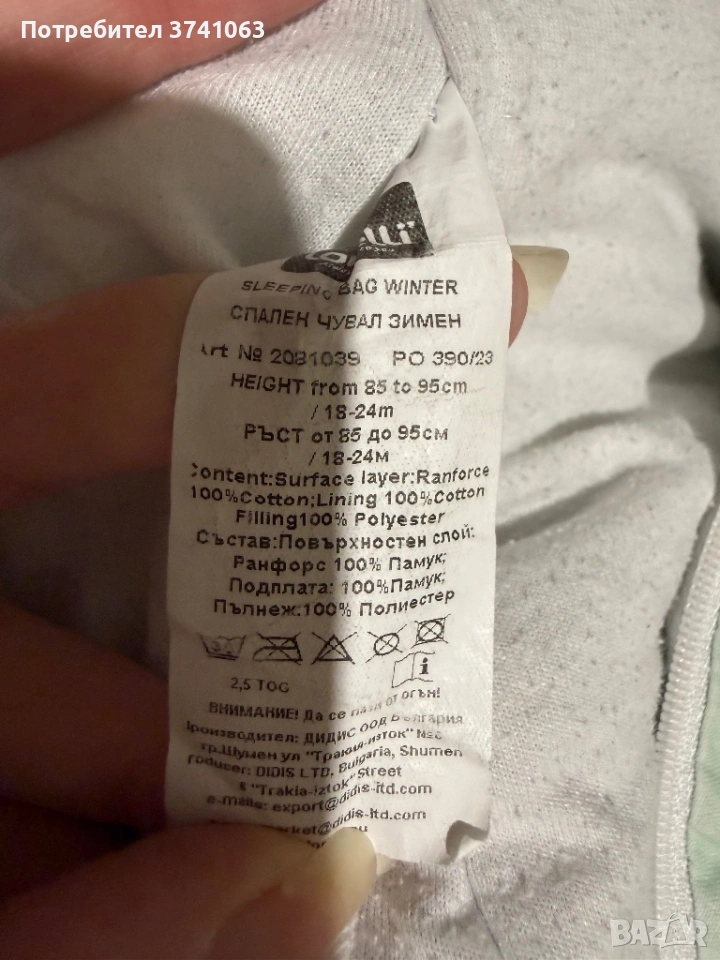 Зимен чувал 2.5 tog (по етикет за ръст 85 до 95 см)- 12 eur