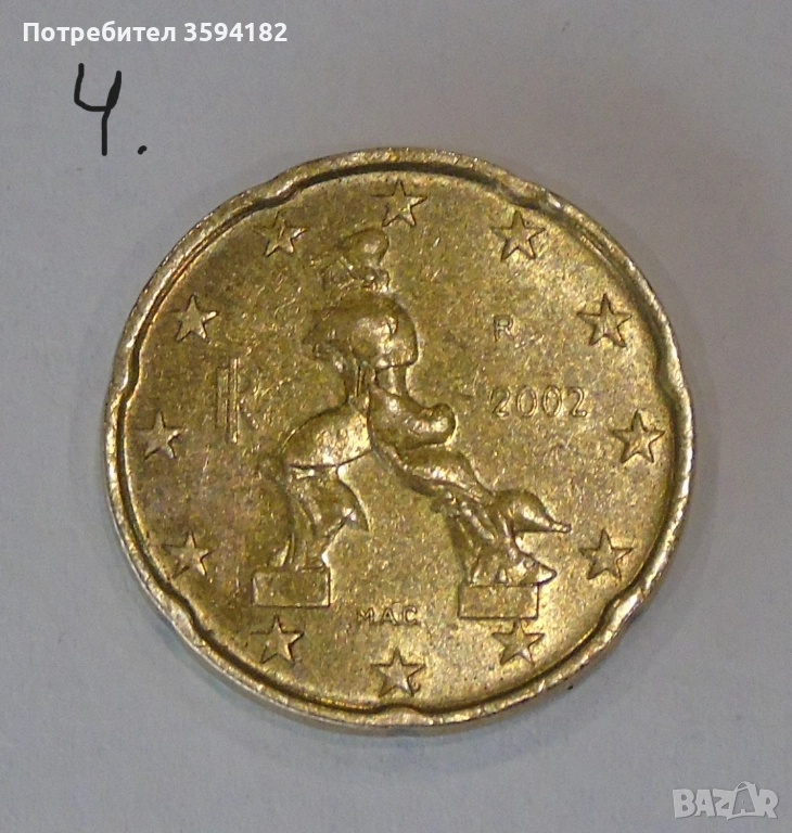 Монетата 20 евроцента 2002 г. е първата евромонета на Италия с този номинал с първата карта на Европа.