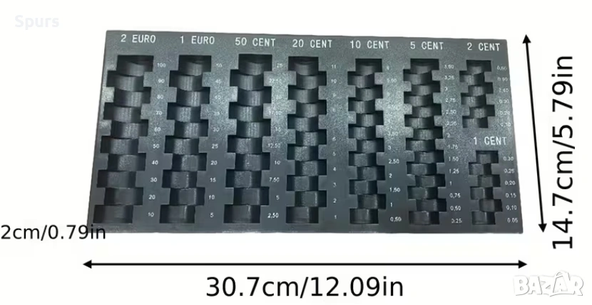 Компактен 30.48см x 14.73см x 2.03см за кассови чекмеджета както и за колекционери на евро!