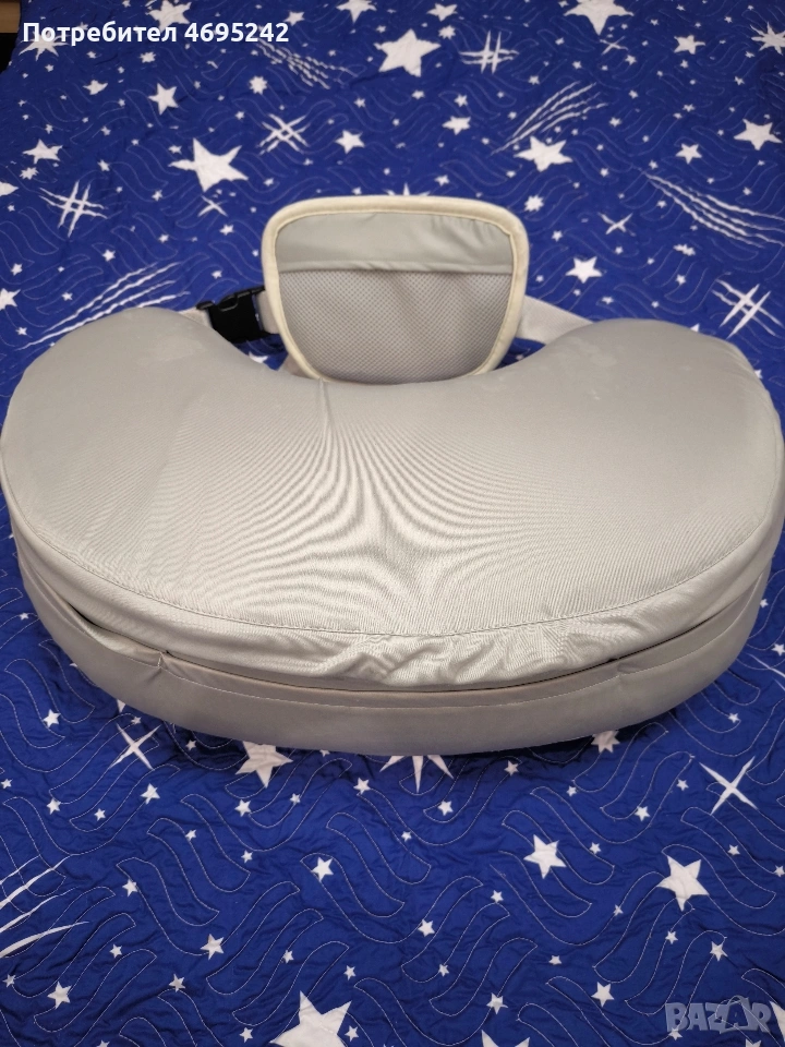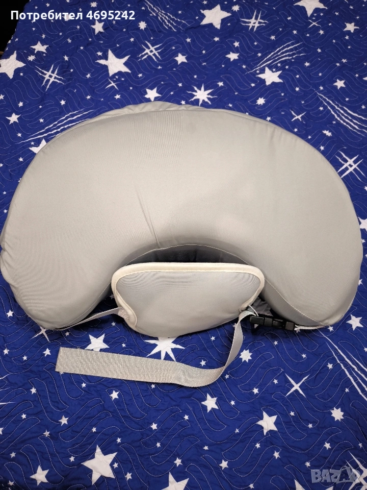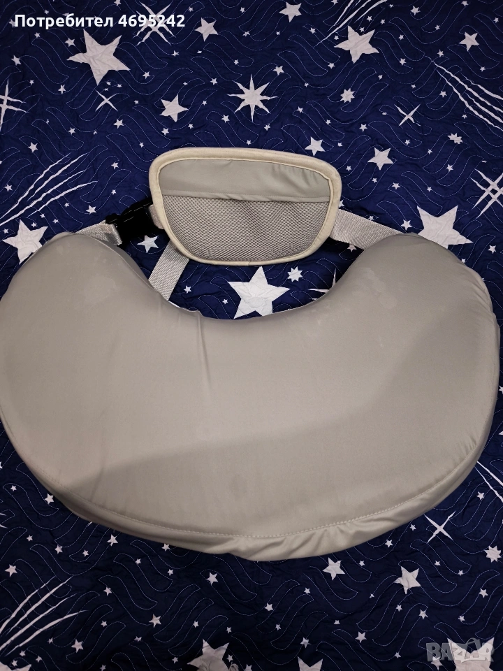Благодарение на своята C-образна форма, възглавницата се адаптира към тялото на родителя, като обгръща кръста и предоставя допълнителна стабилност и повдигане на бебето. Това помага за намаляване на напрежението в гърба, раменете и ръцете, особено при по-продължително хранене.