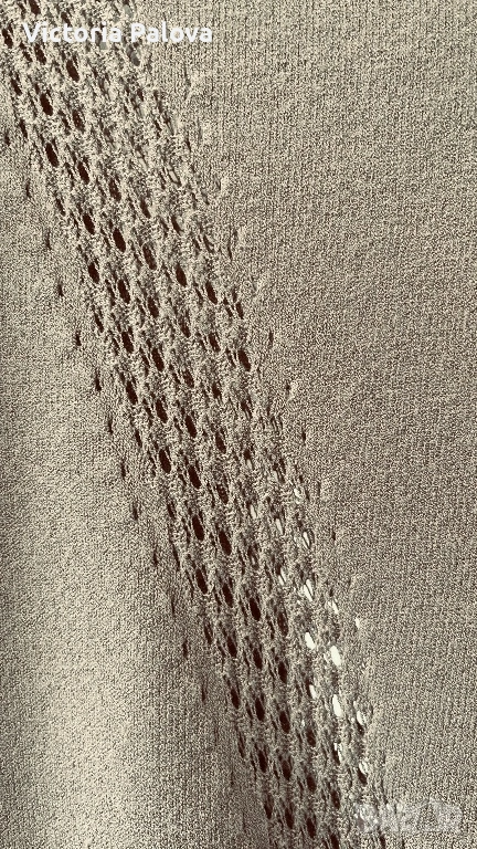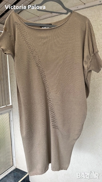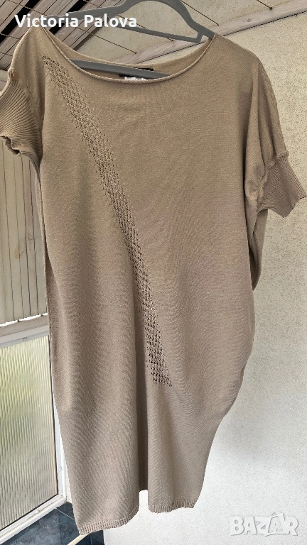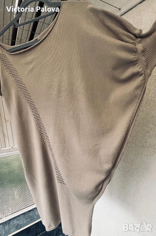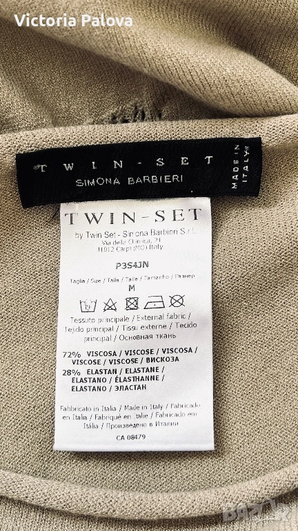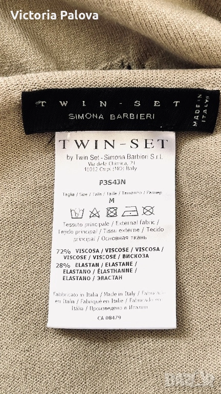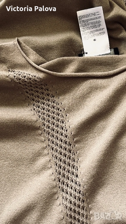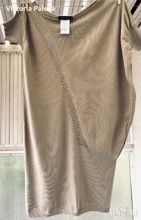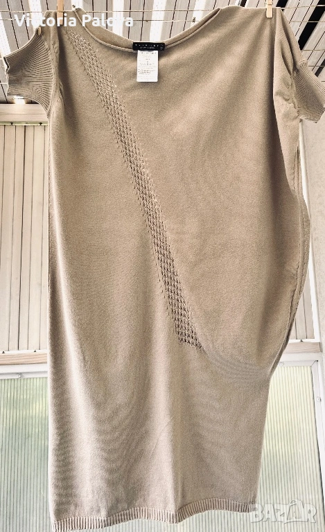 Изключителна асиметрична рокля, синоним на лукс и изтънчен стил, създадена от визионерската дизайнерка Simona Barbieri, Twin-Set е сред най- скъпите и престижни италиански брандове, обичан от жени, които ценят високо качество и романтична женственост. Вискоза и еластан я правят мека и еластична, перфектно обгръщаща фигурата. Асиметричният дизайн и диагонален мрежест детайл добавят нотка на мистерия и съблазън , докато бежовият цвят излъчва класическа изисканост, подходяща за всякакви поводи. Роклята е инвестиция в лукс - Twin-Set е известна с висококачествени материи и ръчна изработка в Италия, където всяка дреха е символ на ексклузивност и безвременна красота. Цената ѝ отразява премиум статуса - оригиналната цена на подобни модели е около 300-400 евро. Рамо - 62см, ГО - 62см, дължина - 89-90см.