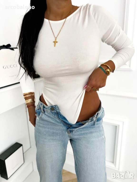 Това уникално, еластично боди с дълъг ръкав е перфектната комбинация от женствена елегантност и модерен минимализъм.
