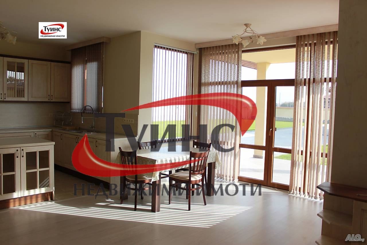 Агенция ТУИНС предлага под наем еднофамилнa къщa с площ 160кв.м., състоящи се от хол, трапезария, кухненски бокс, две спални, баня с тоалетна, самостоятелна тоалетна, килер с перално помещение, веранда.