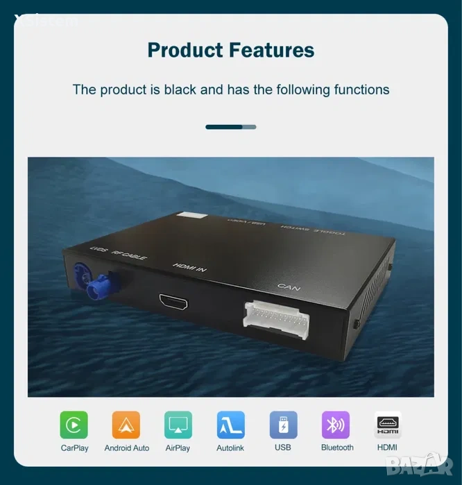 Интерфейса позволява безжично или кабелно свързване и интегрира всички модерни функции директно в екрана на автомобила.