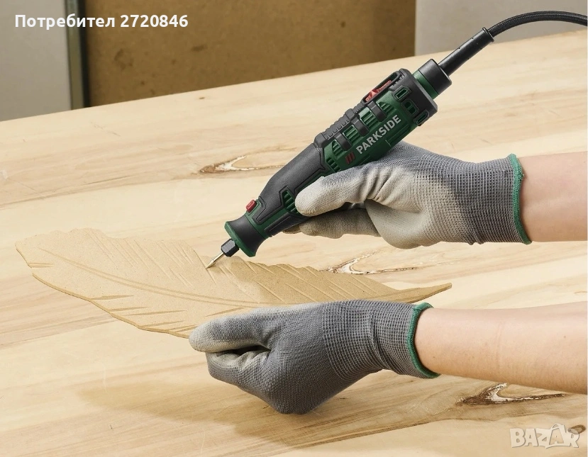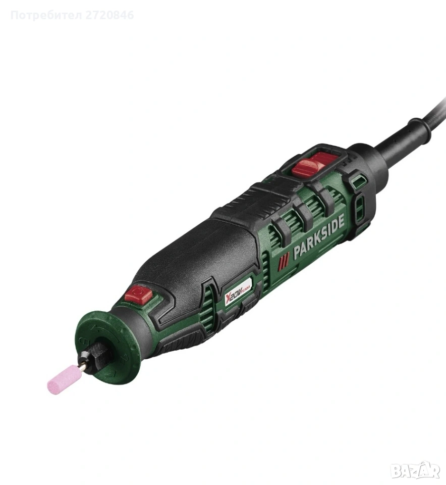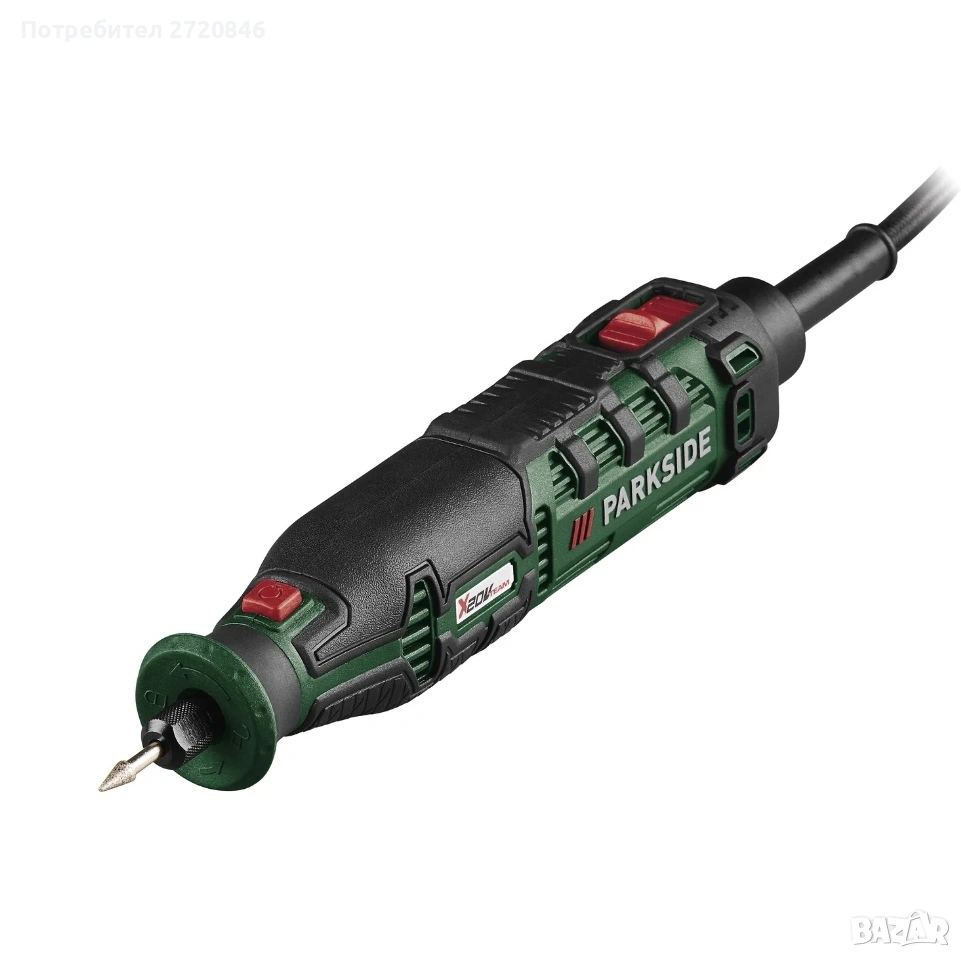 Parkside) 1x адаптер за батерии »PAAK 20 A1« с практична щипка за колан, вграден контрол на скоростта и превключвател за включване/изключване с вграден светодиод С USB порт за едновременно зареждане на други електронни устройства Адаптер с гъвкав кабел за свързване на мини-инструменти за удобна работа В практичен калъф за съхранение Устройство, съвместимо с всички батерии от серията PARKSIDE X 20 V Team Доставката не включва батерия и зарядно устройство Включени аксесоари: 1x метален режещ диск (Ø 50 мм с отвор 10 мм – предварително сглобен), 1x адаптер за режещи и шлифовъчни дискове с отвор 10 мм (предварително сглобен) и кутия с 32-частичен комплект аксесоари: 10x шкурки (Ø 20 мм), 2x режещи диска (32,2 мм), 1x шпиндел за режещ и шлифовъчен диск, 2x шлифовъчни ленти (Ø 15 мм) вкл. 1x шпиндел за шлифовъчна лента, 4x филцови полиращи диска (Ø 25,5 мм / Ø 13 мм) вкл. 1x шпиндел за полиращ диск, 3x силициево-карбидни шлифовъчни накрайника, 3x диамантени шлифовъчни накрайника, 1x HSS свредло, 1x стоманена четка (Ø 23 мм), 1x адаптер за режещи и шлифовъчни дискове с отвор 6,4 мм (за дискове с Ø 38 мм), 1x гаечен ключ, 1x шестостенен ключ Технически данни Напрежение: 20 V Препоръчителна батерия: 20 V (2 Ah) Безжичен мултифункционален инструмент »PMW 32 A1«: Скорост: 5000 – 25000 об/мин Диаметър: 3,2 мм Акумулаторен ъглошлайф »PWS 50 A1«: Скорост: 4800 - 6000 об/мин Диаметър на диска: макс. 50 мм Монтаж: 10 мм (6,4 мм с адаптер) материал пластмаса Маса Адаптер за батерия: приблизително 4 x 6,5 x 10 см Многофункционален инструмент: приблизително 3 x 3 x 18,5 см Ъглошлайф: приблизително 7,6 x 6,3 x 18,5 см Свързващ кабел за миниинструмент: приблизително 1,2 м Тегло приблизително 1,145 кг