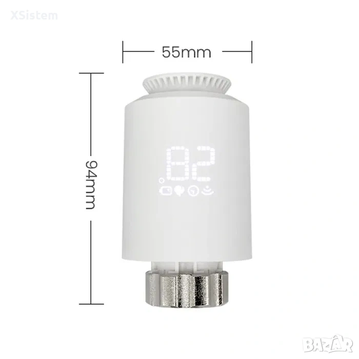 Интелигентен термостатичен вентил за радиатор, известен също като интелигентен TRV, замества съществуващия термостатичен вентил на вашия радиатор и ви позволява да създадете зонирана отоплителна система, в която всеки радиатор може да се управлява индивидуално с помощта на приложение на вашия смартфон или таблет. ТОВА КОЕТО ПРЕДЛАГА ТОЗИ ПРОДУКТ Е: УПРАВЛЕНИЕ ОТ ТЕЛЕФОН – Независимо къде се намирате по земното кълбо, имате пълен контрол над радиаторното си отопление; ИКОНОМИЯ НА ЕНЕРГИЯ – Работа само при нужда, там където е необходимо. Край на разходите за излишна енергия;