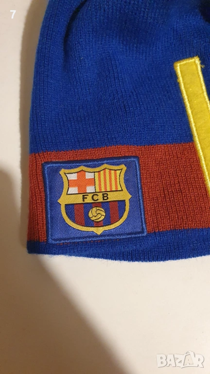 Футболна зимна шапка на ФК Барселона официален продукт номер 10 Лионел Меси доста рядко срещан модел мъжки размер за голям човек доставка с еконт или спиди с преглед и тест преди заплащане