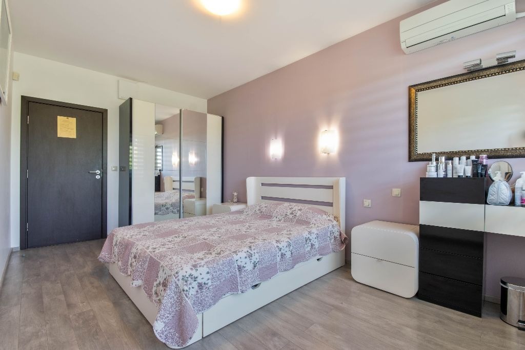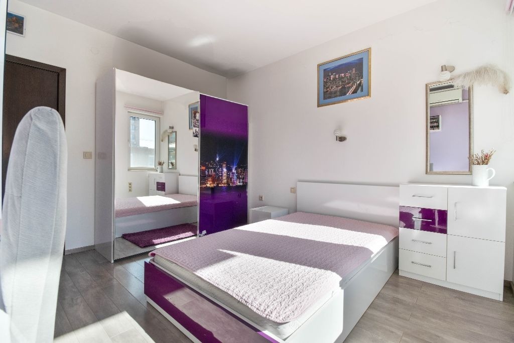 Апартаментът е в отлично състояние, напълно обзаведен с поръчкови мебели, проектирани с вкус и внимание към детайла. Оборудван е с три инверторни климатика, гарантиращи енергийна ефективност и комфорт целогодишно.