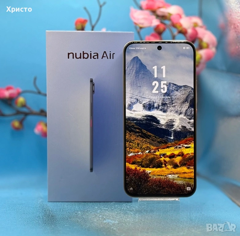 ZTE nubia Air (8 GB RAM / 256 GB, 5G) в отлично състояние – телефонът е много запазен, като нов, използван много малко и повече е стоял в кутията, отколкото да бъде ползван. Външният вид е перфектен, без драскотини или забележки, а всички функции работят безупречно.