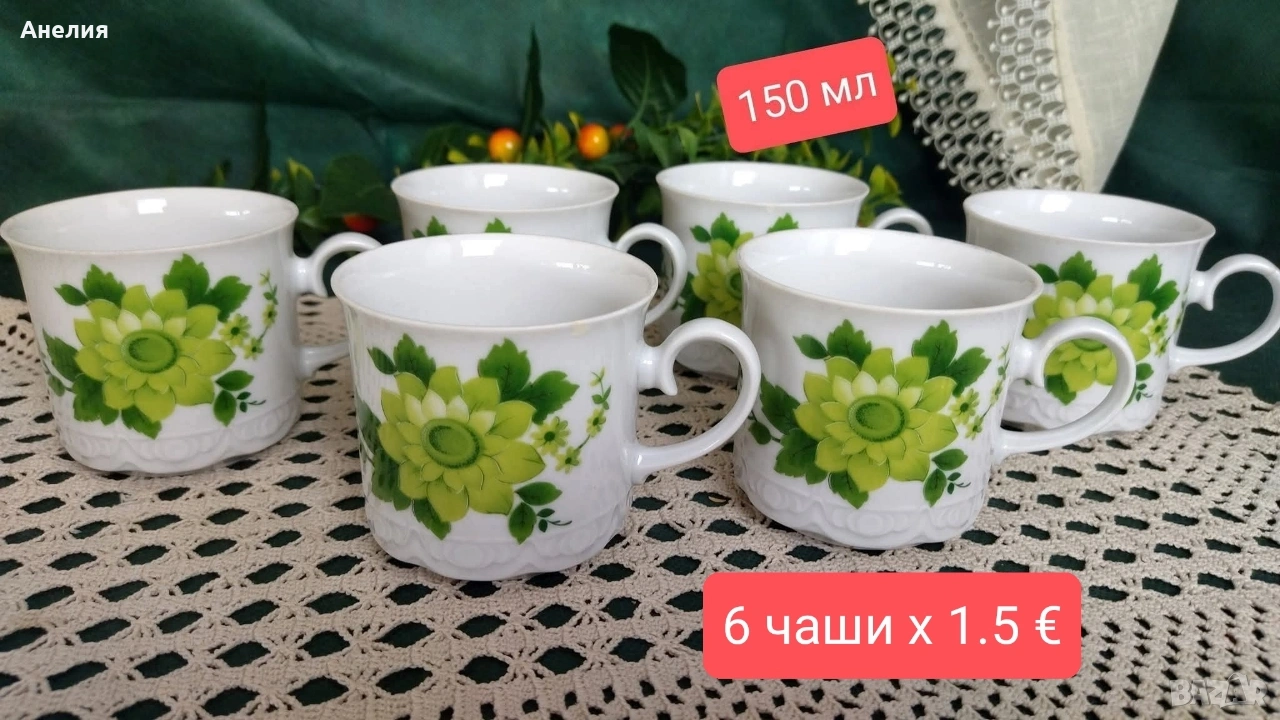 🌿6 соло чаши с вместимост 150 мл с лека корекция по ръба,което не се вижда особено,защото е отдолу.Цена х 3 лв/1.50€