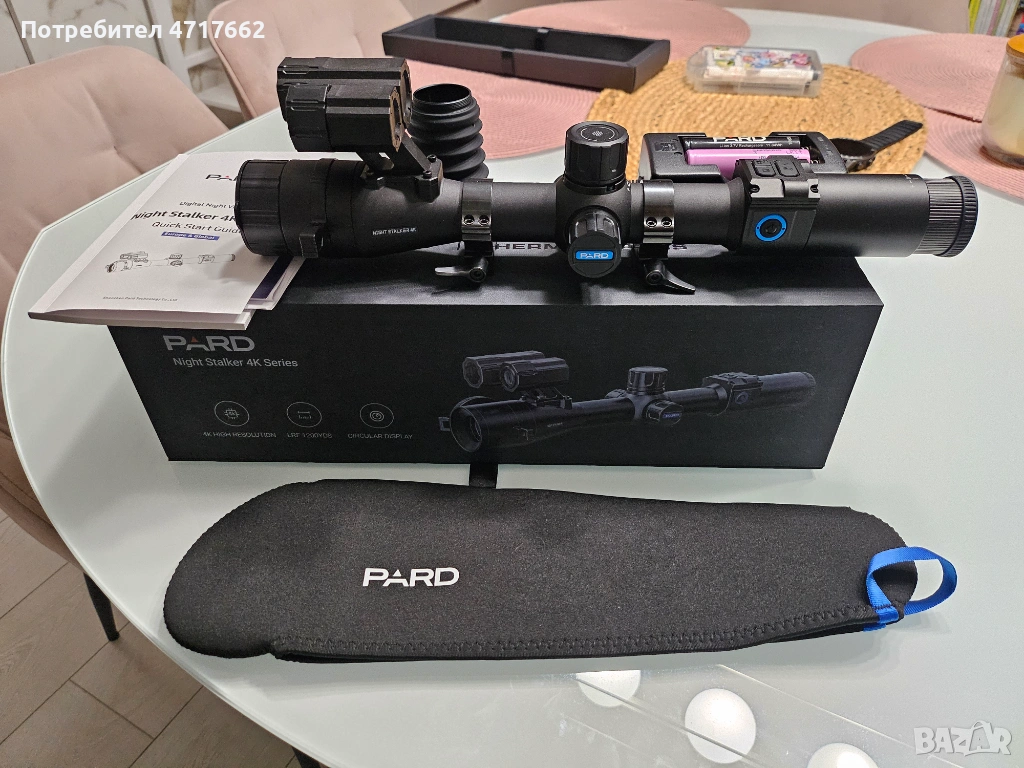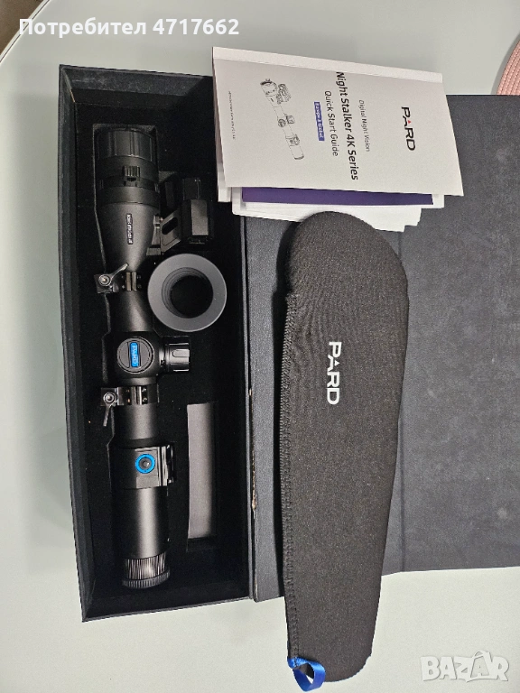 Продавам Pard NS4-100/850-LRF с далекомер и балистичен калкулатор.Има приложение за телефона,прави снимки и клипове,запис при истрел,карта памет.Инфрареда е напълно достатъчен на три степени,не е нужно да слагате допълнителен както при много други модели ,далекомера измерва до 1000метра.Оптичнот увеличение 8 ,цифрово 4.Закупен декември 2024. Остатъчна гаранция 1 година .Продава се в комплект с рингове на Русан ,втора батерия и зарядно. Уреда не е ползван само е направена прострелка. Неразличим от нов. Възможен тест и преглед в град Бургас. Цена за целия комплект 870 евро,без ринговете 770 евро.За повече информация 0899 85 57 64.