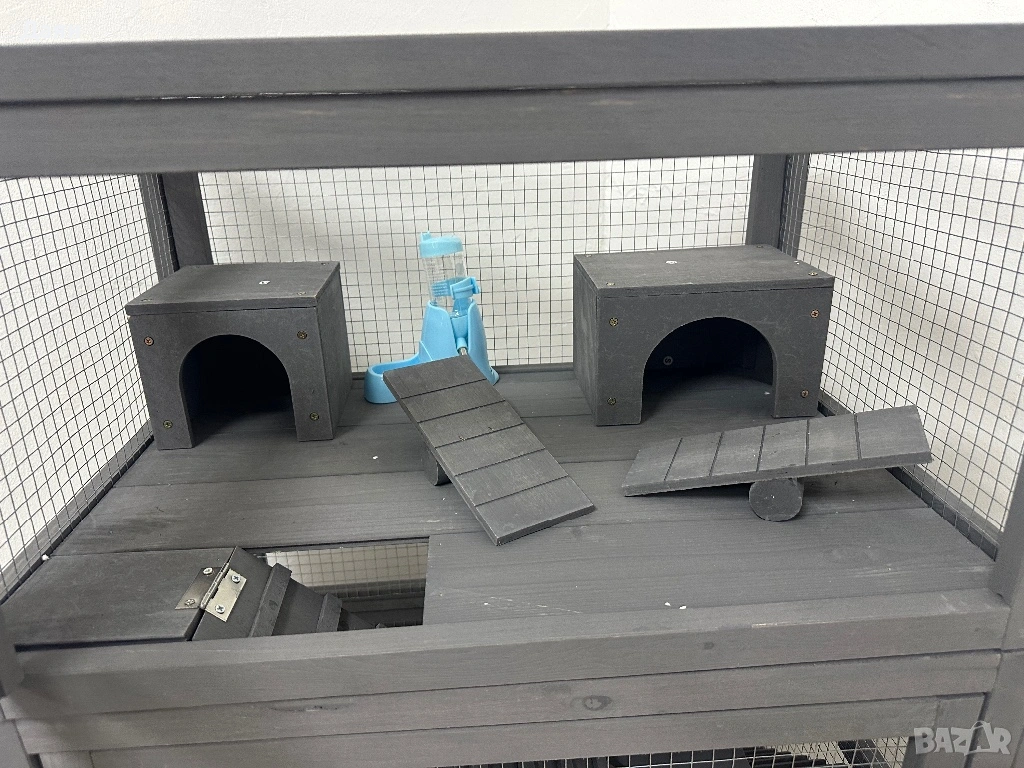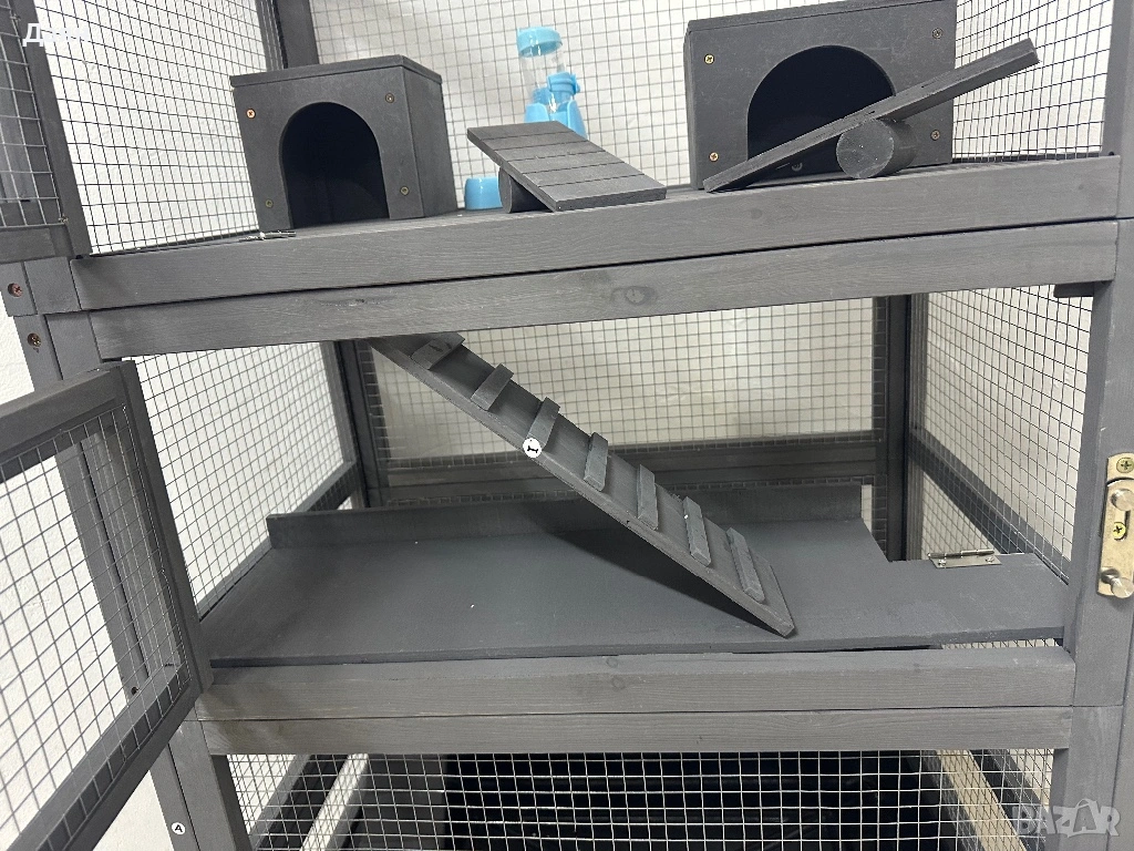 Дървена клетка за гризачи на 4 нива с къщички, люлка, купички за храна, рампи и колелца PawHut → Обява 53208756