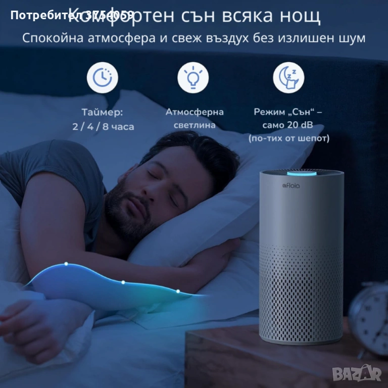 Пречиствател за въздух Afloia Kilo – 3-степенна филтрация, 1076 ft² покритие, 22 dB → Обява 53208999