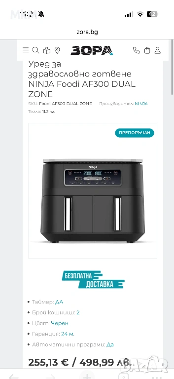 Уред за здравословно готвене NINJA Foodi AF300 DUAL ZONE