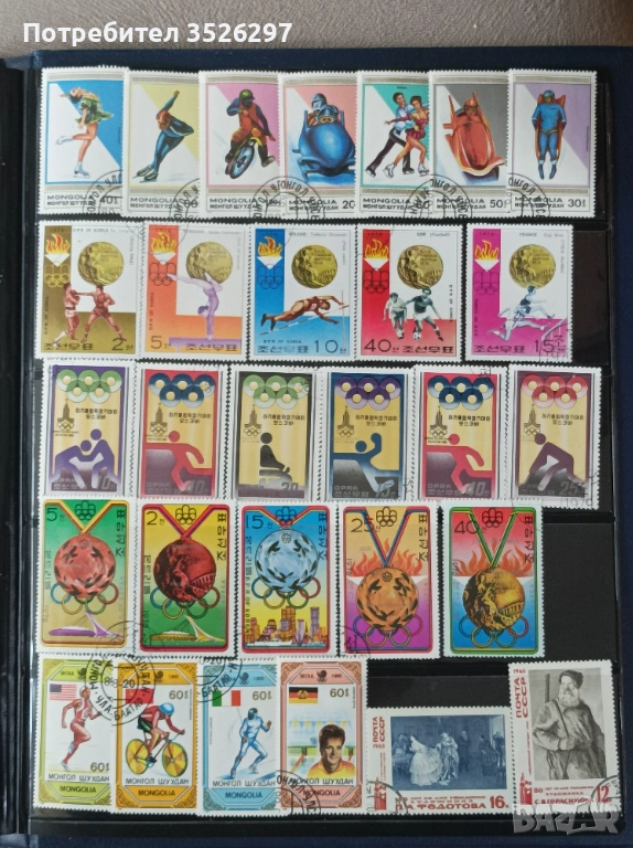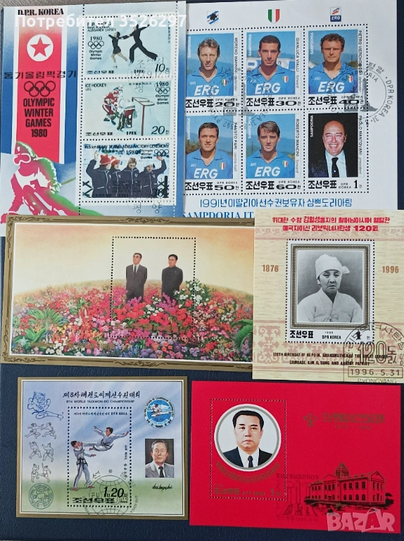 19 серии пощенски марки (някои не са пълни) от различни държави, плюс 2 блок серии, плюс 4 пощенски блок марки от КНДР (Северна Корея).