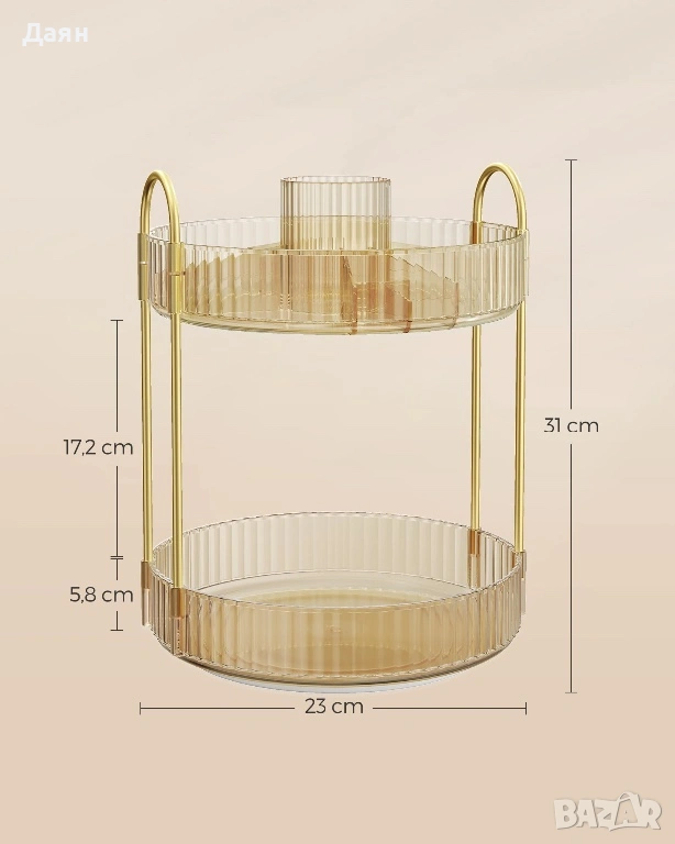 Въртящ се органайзер за грим, кръгъл, 2-етажен, регулируем, за тоалетка SONGMICS