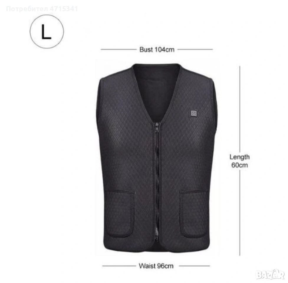 Унисекс електрически термичен елек за зимния период с USB свързаност/Ефективно предпазва от студ през зимните месеци; USB порт за свързване на захранващата банка; 4 режима на подгряване с различен интензитет; Мигащ светлинен индикатор - автоматично отопление; Червена светлина - ръчно нагряване, висока температура; Бяла светлина - средна температура; Синя светлина - ниска температура; Подходящ за пране на температура под 30 градуса; Подходящ за носене и от мъже и от жени; Цвят: черен; Размер: M, L, XL, 2XL, 3XL;