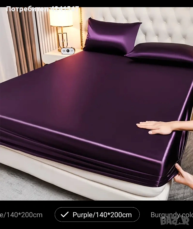 3. Непромокаемо покривало в тъмно лилав цвят за легло с размери 200х140 см. Предпазва матрака от телесни течности.