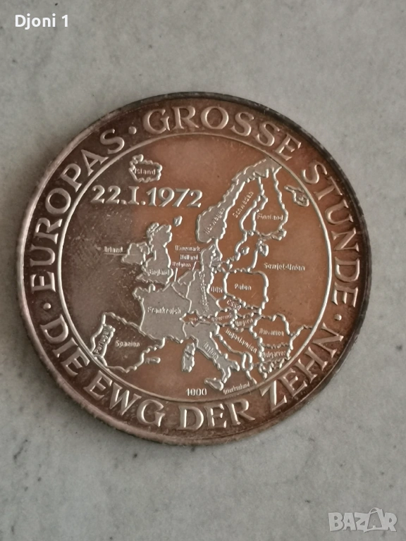Юбилеен сребърен медал от 22.01.1972 по случай присъединяването на Дания, Великобритания, Ирландия и Норвегия към Европейската общност.