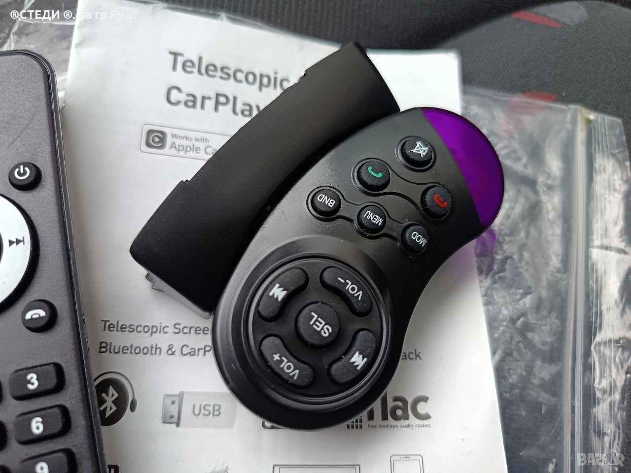 Комплекта никога не е ползван, 1 бр дистанционно + дистанционно за волана и кабела за плеара. + упътване.