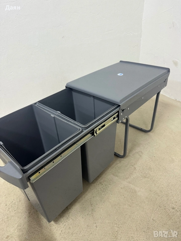 ОБМИСЛЕН ДИЗАЙН Матираният капак на системата за разделяне на отпадъците задържа миризми, като същевременно служи като полезно отделение за съхранение. Вътрешните кофи са оборудвани с дръжки, които позволяват лесно и чисто изваждане.