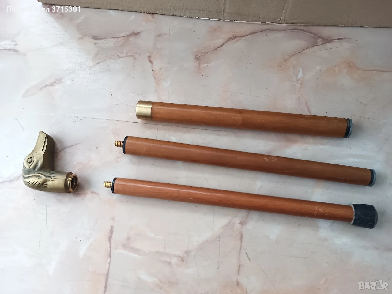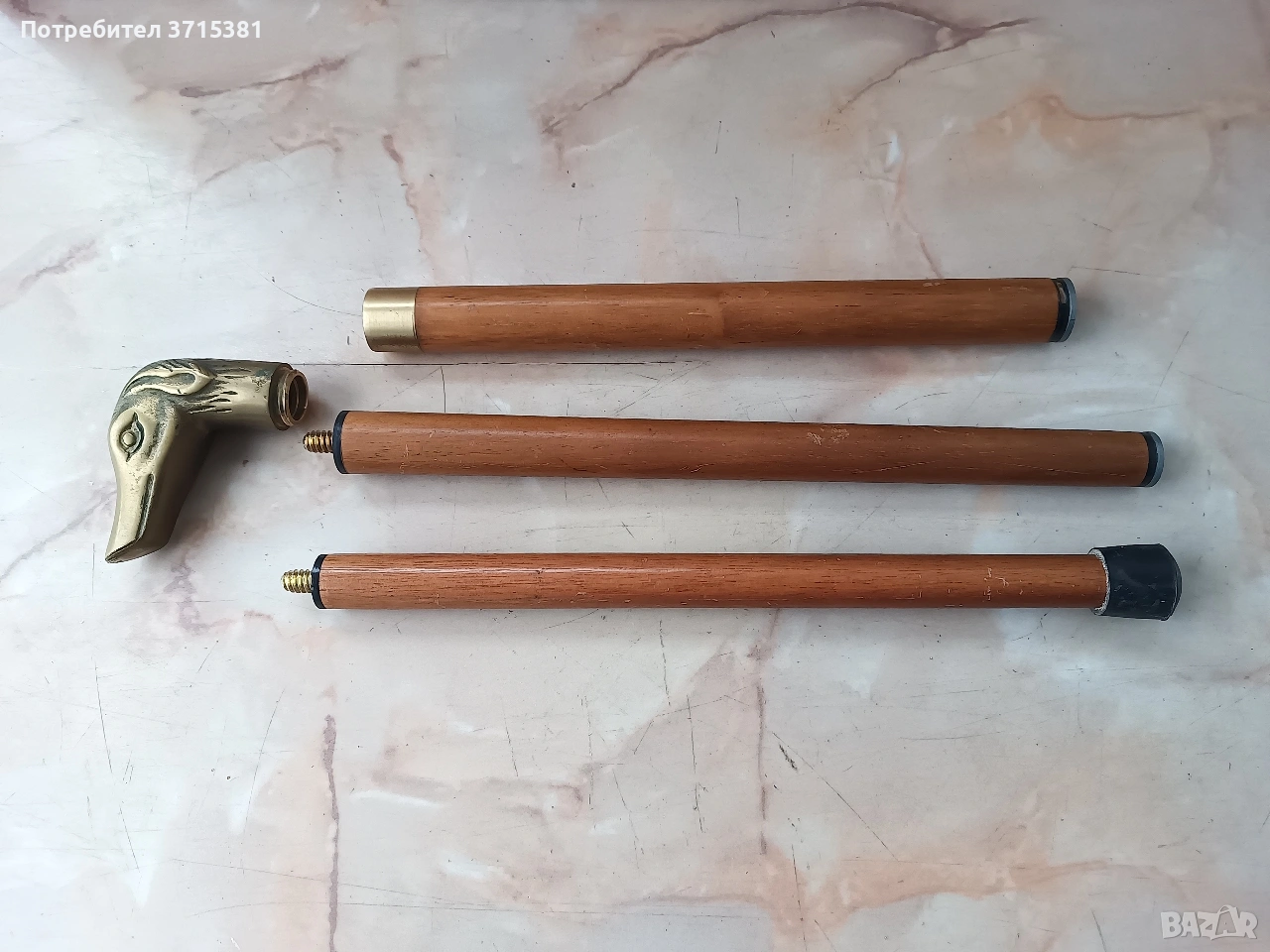 Дървен бастун с бронзова дръжка с тайник - разглобява се на 3 части. Общ размер- 91 см.