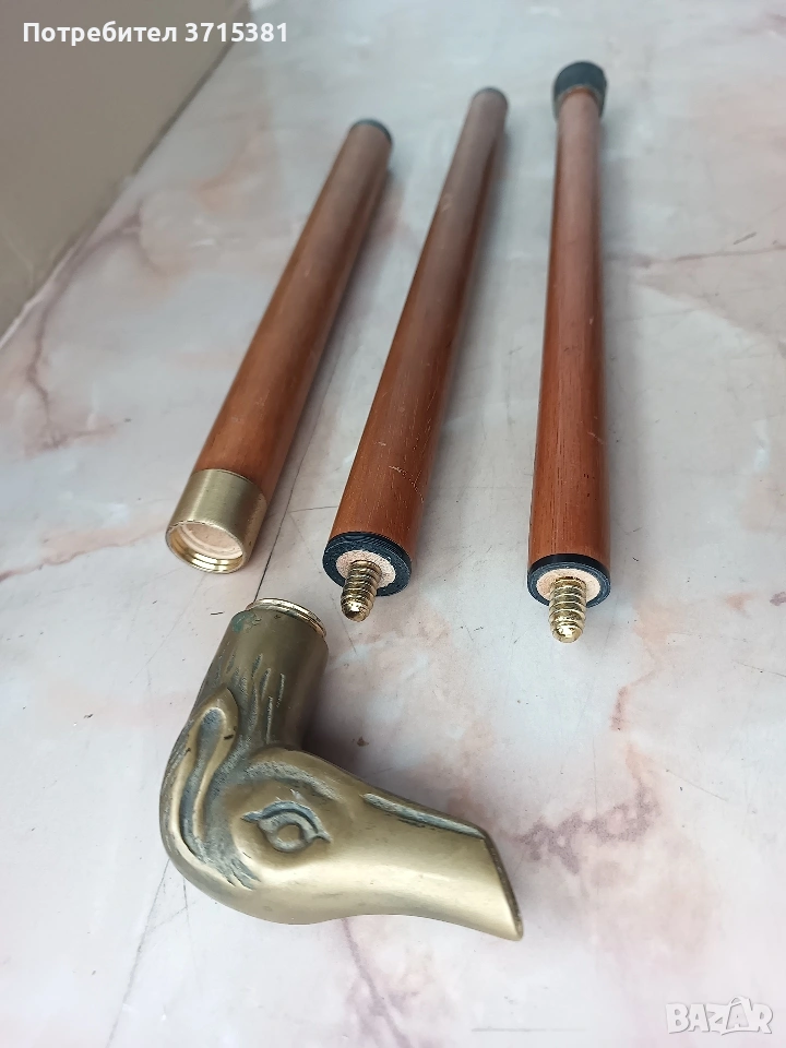 Дървен бастун с бронзова дръжка с тайник → Обява 53210177