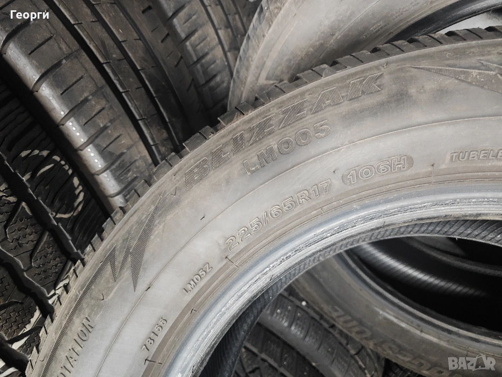 4бр. Bridgestone, 225/65/17 ДОТ 4421, 7.3mm грайфер. Гумите са перфектни, без забележки, проверени са машинно за кривини, балони!! Разполагаме с всякакъв размер нова и втора употреба гуми от 14-22 цола за автомобил, джип и бус.