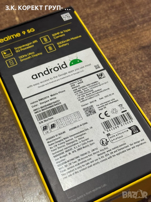 Мобилен телефон Realme 9 5G 64GB, снимка 1 - Други - 53210916 Мобилен телефон Realme 9 5G 64GB, снимка 2 - Други - 53210916 Мобилен телефон Realme 9 5G 64GB, снимка 3 - Други - 53210916 Мобилен телефон Realme 9 5G 64GB, снимка 4 - Други - 53210916 Мобилен телефон Realme 9 5G 64GB, снимка 5 - Други - 53210916 Мобилен телефон Realme 9 5G 64GB, снимка 6 - Други - 53210916 Мобилен телефон Realme 9 5G 64GB, снимка 7 - Други - 53210916 Мобилен телефон Realme 9 5G 64GB, снимка 8 - Други - 53210916 1/8