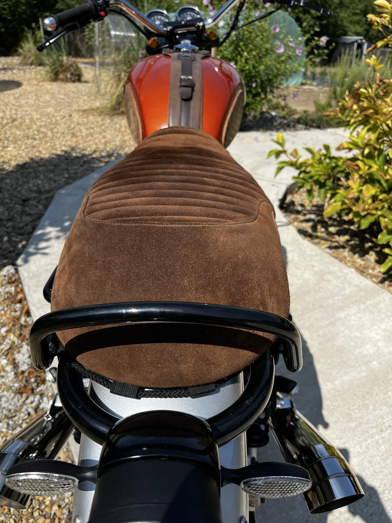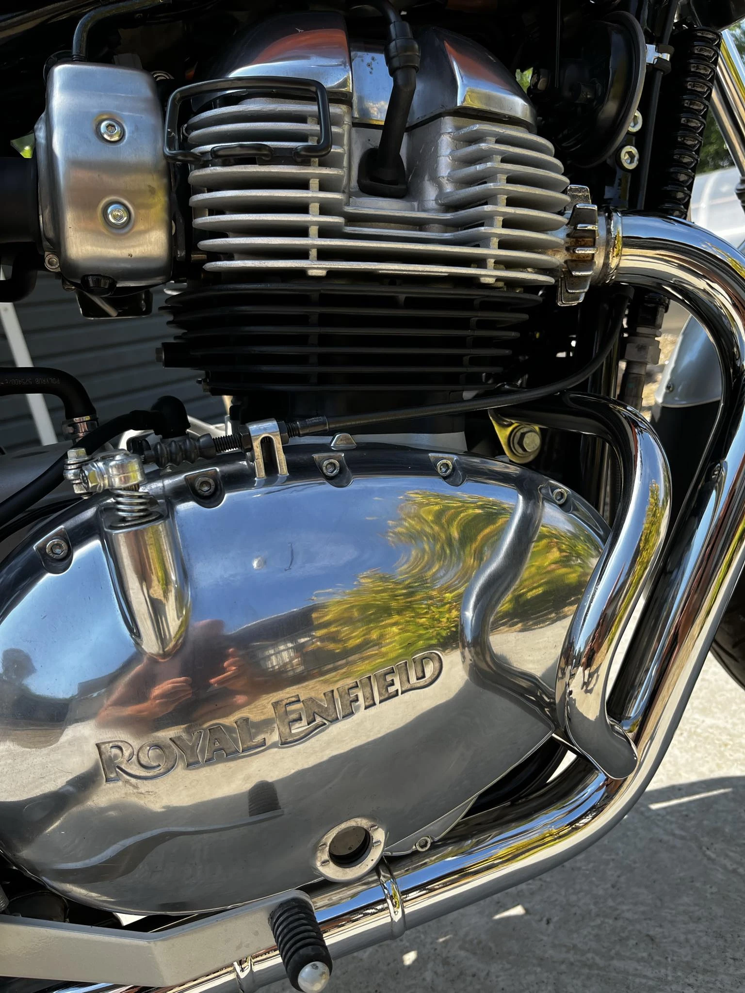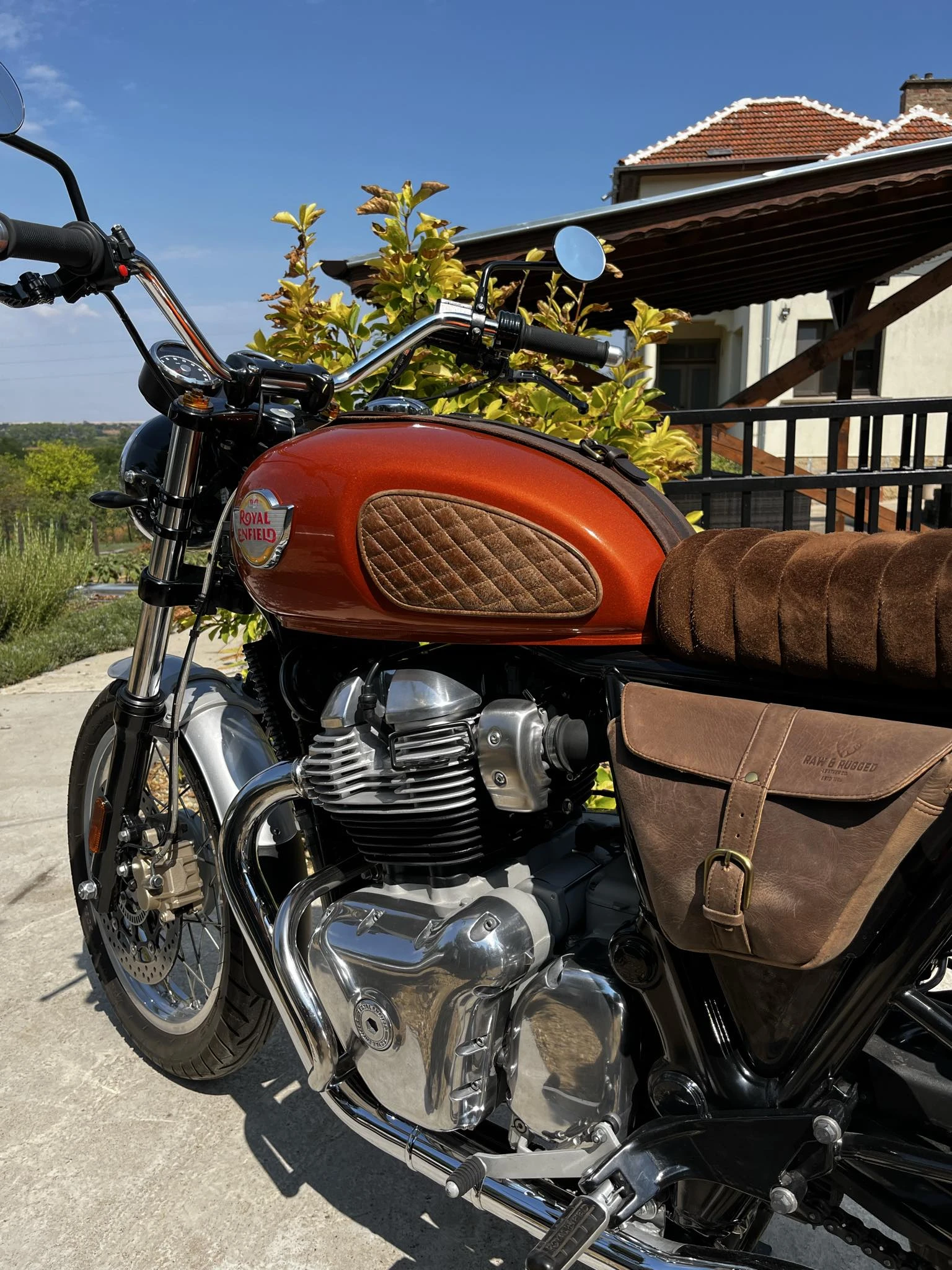 Пример за перфектно центрован и персонализиран Royal Enfield 650 Interceptor. Само на 10000 км. Много добре поддържан и редовно обслужван мотор. Похарчих много повече по мотора, от колкото искам за него. Всички такси и задължения са платени. Тестово каране само с парите на място. Екстри: Triumph Street Scrambler пружини на предната вилка, LED фарове ТЕС, скоби за фарове ТЕС, LED мини мигачи F&R, Регулатори за прелоад на вилката Venhill Engineering, Маркуч на предната спирачка, комплект ТЕС регулируеми спирачен лост и лост на съединител, BAAK огледала, TC Bros дросел, тежести за спиците и центровани капли, нови грипове (ръкохватки). Персонализиран превключвател и стартер бутон на дясната ръкохватка на кормилото на Cafe Twin, Hitchcock Кабелите са прекарани отвътре за по-изчистен вид, Desert Sled bars от Ace Classics, USB порт. Качествени кожени протектори за резервоара. Странични малки чанти и капак за седалката, BAAK алуминиеви странични панели, TEC LED задна светлина. GIVI задна скара за багаж (не е на снимките, но върви с мотора) Горивен модул и цялостна ръчно изработена изпускателна система по поръчка. Нови гуми Dunlop, Arrowmax F&R модификация на реле-регулатора (преодолява често срещан проблем на модела). Комплект кит за преместване на задните стъпенки (не е монтирано, но върви с мотора), BWin задни амортисьори