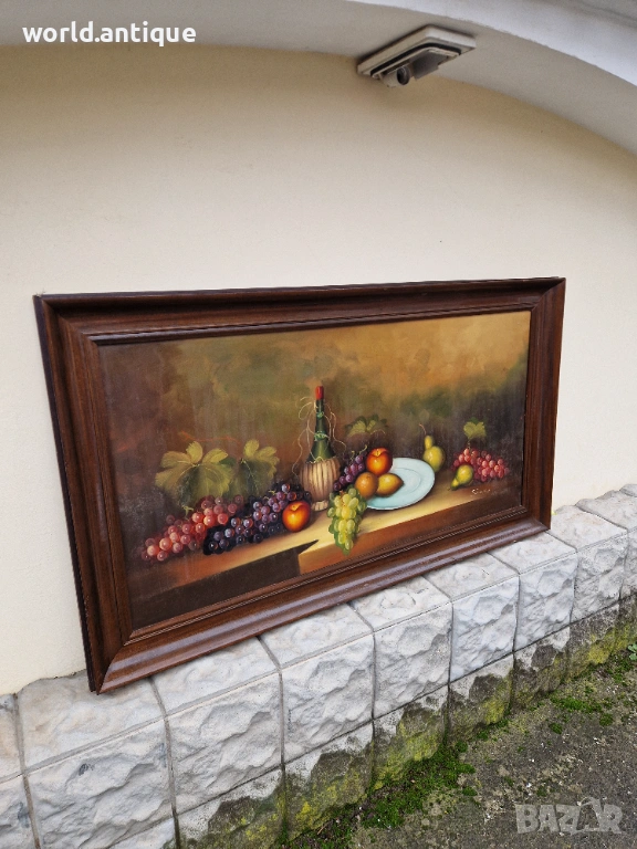 Продавам прекрасен огромен натюрморт майсторски авторски в много добро състояние с чудесна дървена рамка. Размери 138 см на 78 см. Страхотно допълнение към интериора на Вашия дом офис вила ресторант хотел. Подходяща и за подарък. Работя с всички куриери. Отговарям бързо.
