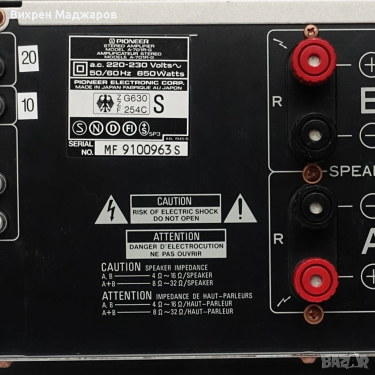 отлично запазен и перфектно изглеждащ Pioneer A‑701R, произведен в Япония. Модел от високия среден клас на Pioneer от 90‑те години, известен със стабилното си захранване, мощен звук и качествен phono вход за MM и MC дози.