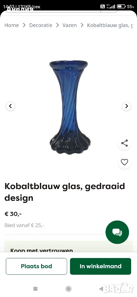 Кобалт ваза усукан дизайн, снимка 1 - Вази - 53211391 Кобалт ваза усукан дизайн, снимка 2 - Вази - 53211391 Кобалт ваза усукан дизайн, снимка 3 - Вази - 53211391 Кобалт ваза усукан дизайн, снимка 4 - Вази - 53211391 1/4