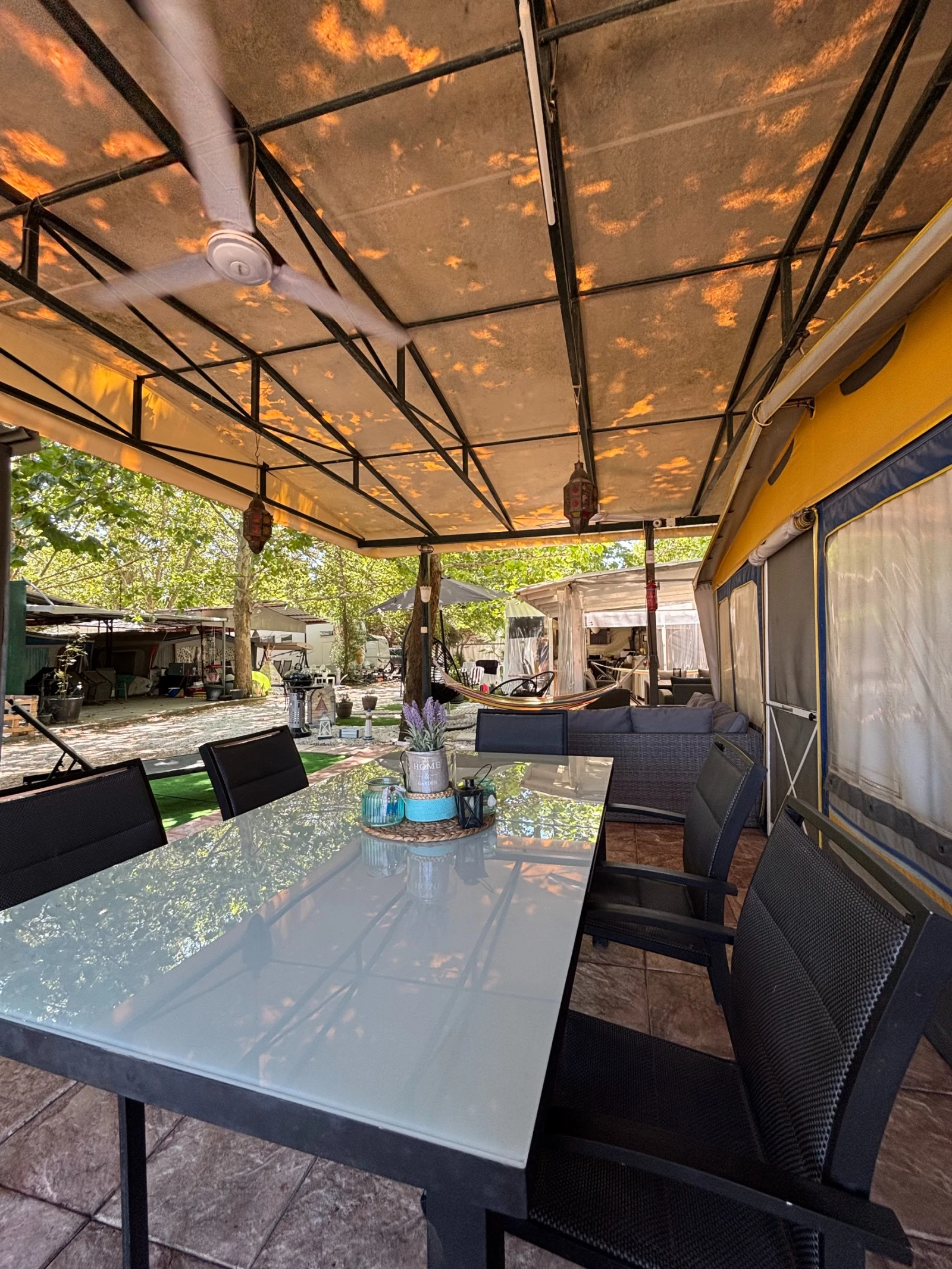 Каравана Knaus 750, показана на снимката, се продава в къмпинг Sun Paradiso в Неа Ираклица, Кавала (бивш къмпинг Paradiso). Тя е напълно оборудвана с: каравана, кухненски бокс (с хладилник, пералня, микровълнова печка, мивка, шкафове, рафтове), външен душ, климатик. Караваната включва двойно легло, диван в хола и телевизор. Вътре в караваната има двойно двуетажно легло, разтегателен диван, още едно двойно легло, баня и много места за съхранение. Караваната е в отлично състояние с някои нормални следи от употреба, с възможност за настаняване на до 10+ души. За повече информация или снимки, можете да се свържете с нас чрез съобщение или като се обадите на посочения по-горе номер.