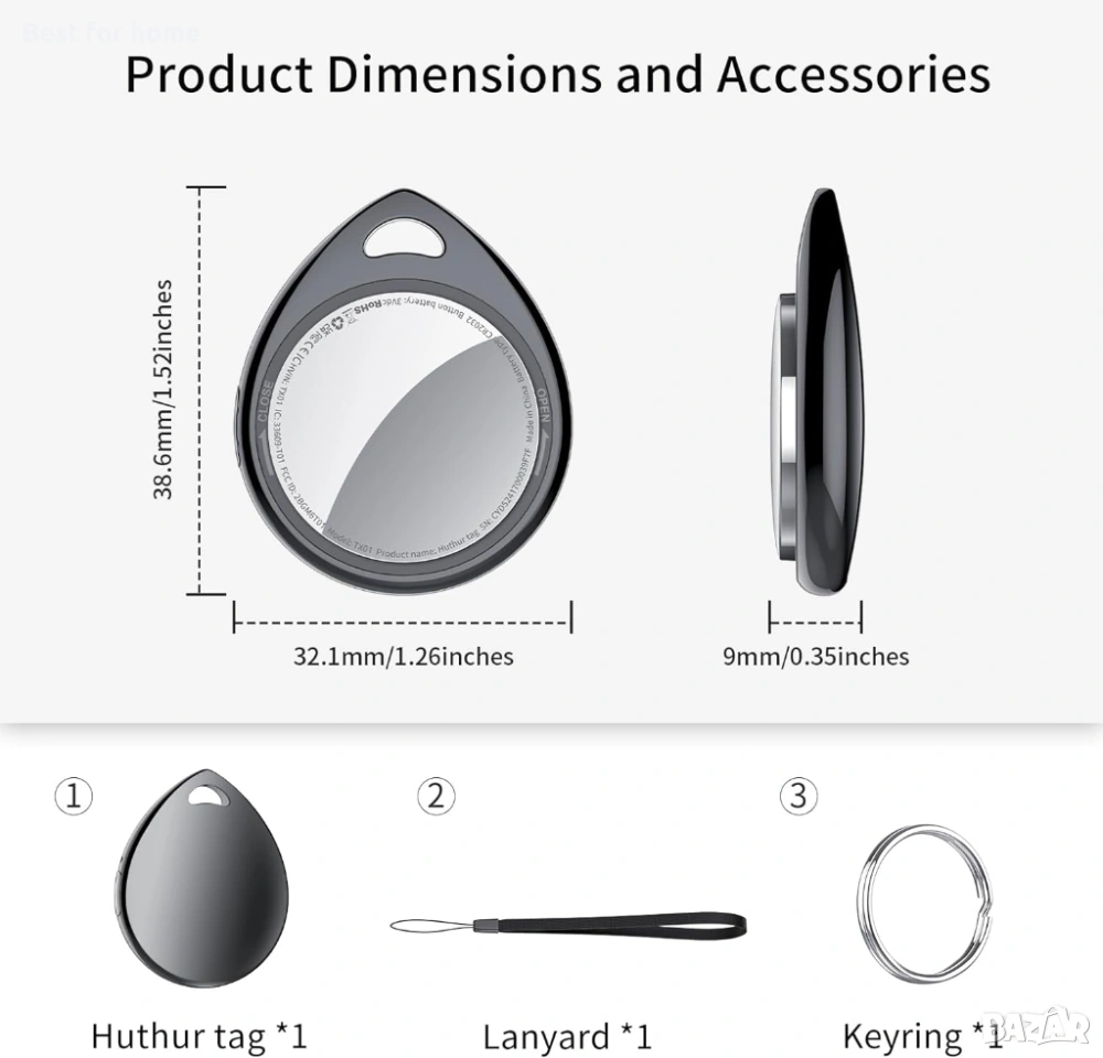 Мощен звук (100dB): Ако ключовете ви са наблизо (под дивана или в друга стая), можете да пуснете силен звуков сигнал от 100 децибела, за да ги откриете веднага.