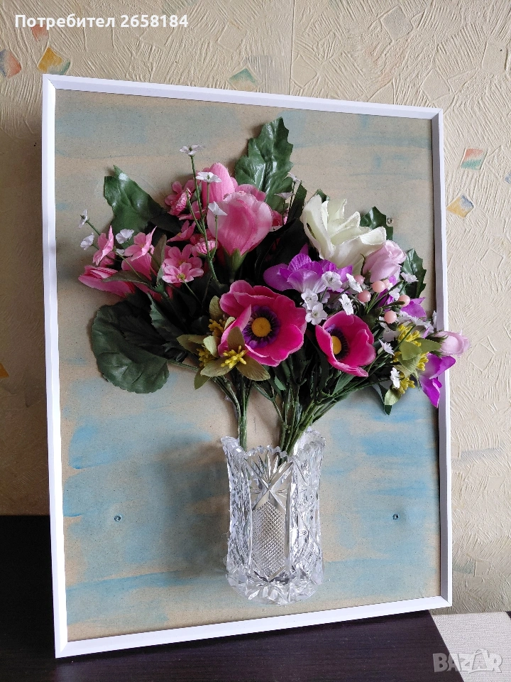 Пано с цветя и кристална ваза, 31/41см. 15евро. За София безплатна доставка.