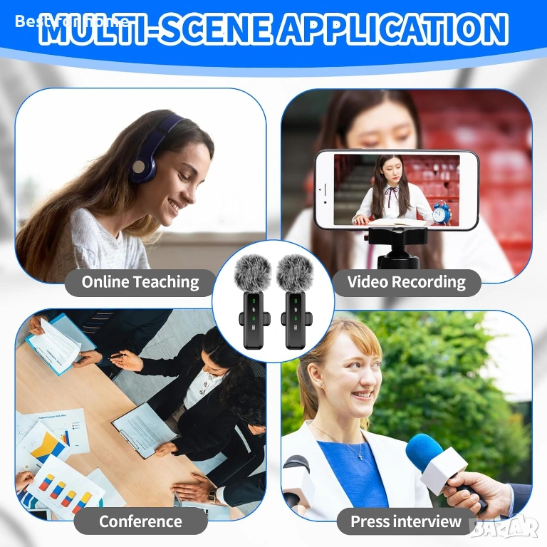 Пълен комплект за двама: Пакетът включва два микрофона, което позволява на двама души да записват едновременно – перфектно за интервюта и подкасти.