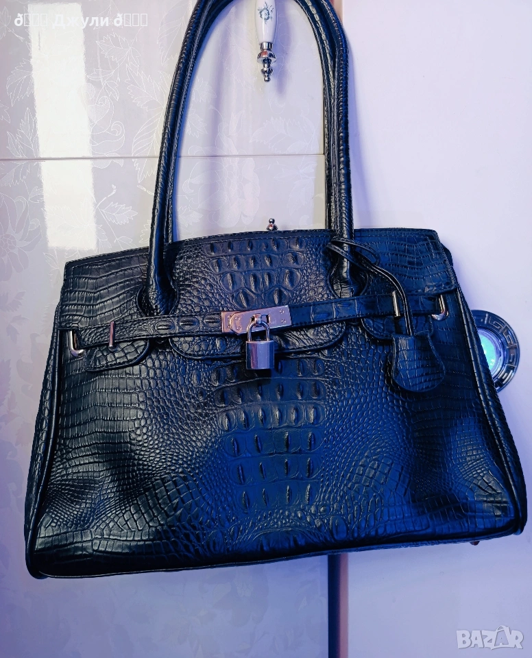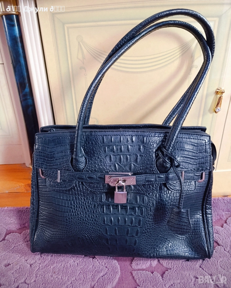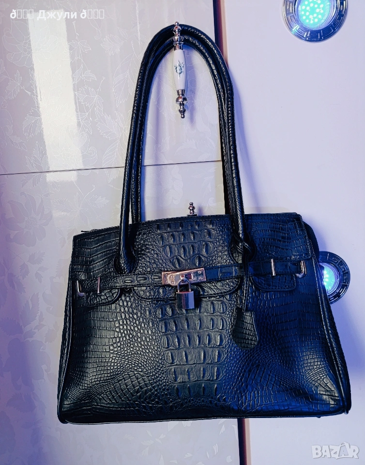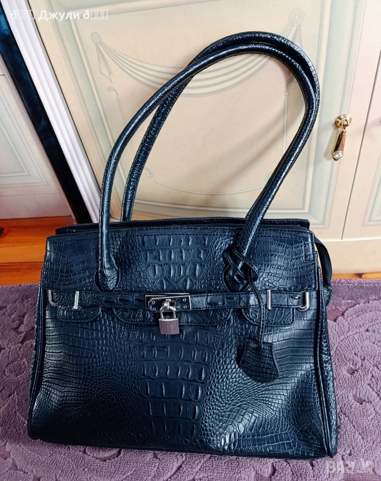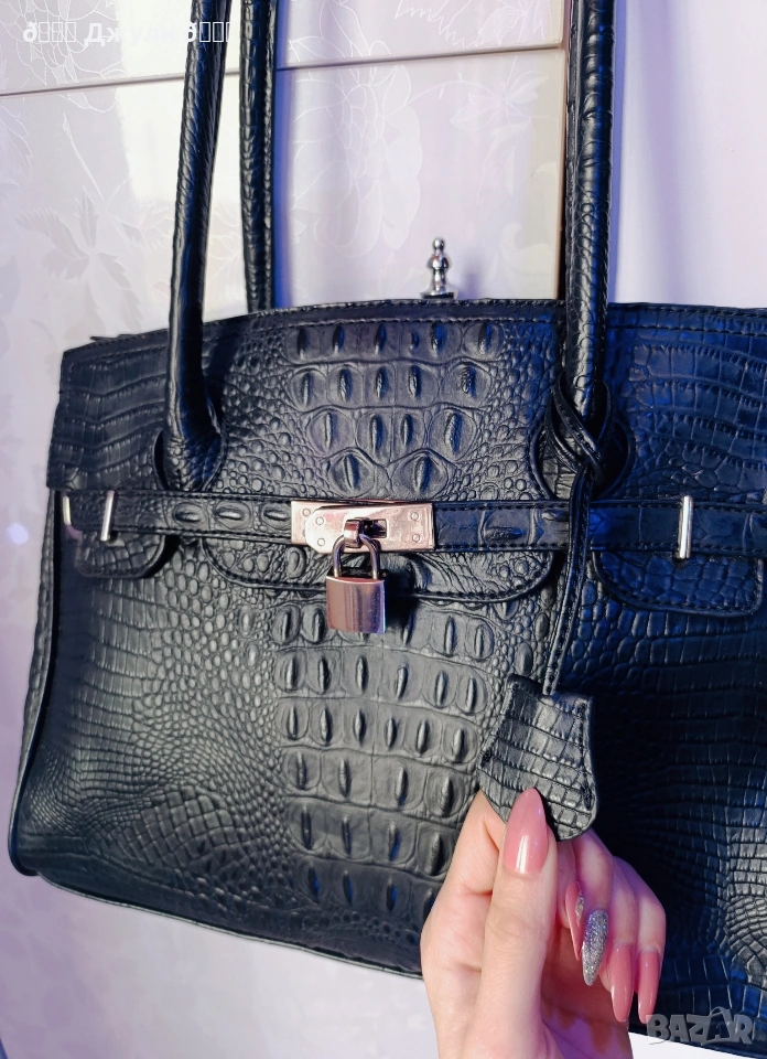 Стилна дамска чанта от естествена телешка кожа, която имитира моделите на Birkin