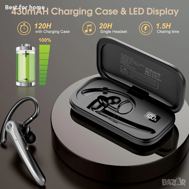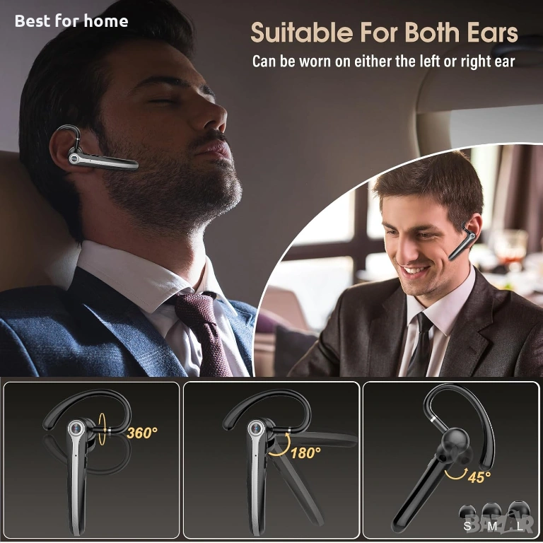 Ергономичен и въртящ се дизайн: Слушалката може да се носи както на лявото, така и на дясното ухо, благодарение на 180° въртящата се кука и подвижния микрофон.