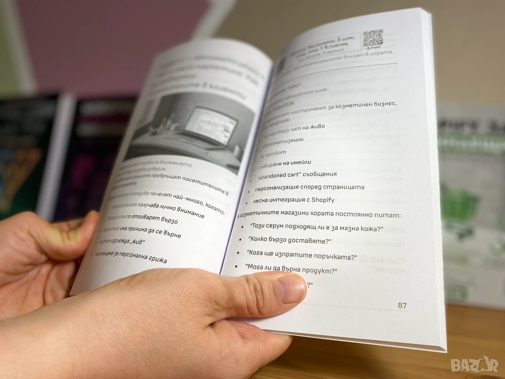 Книгата е написана в лесен, ясен и практичен стил, подходящ както за начинаещи, така и за напреднали предприемачи. Всяка глава започва с фотореалистичен image prompt за визуално съдържание, което можете да използвате за своите продукти, страници и маркетинг материали.