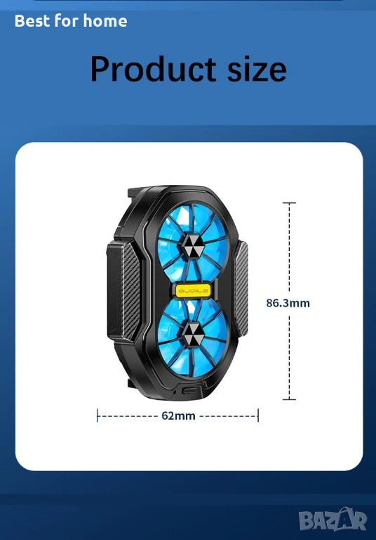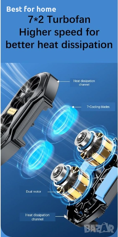 Двойна охлаждаща мощност: Оборудван с два независими мотора и два вентилатора със специален дизайн на перките за максимален въздушен поток.