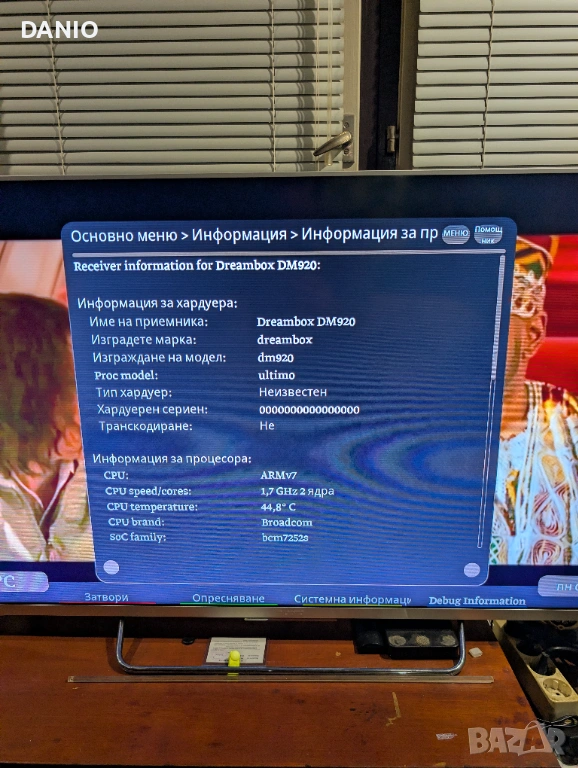 PRIEMNIKA RABOTI PERFEKNO IMA ZAREDENI AIPI TELEVISII PRIEMNIKA E SAS MONTIRAH VENTILATOR BEZ6UMEN IRABOTI DOSTS TIXO I NE ZAGRQVA POVE4E OT 44 GRADOSA CENATA NESE KOMENTIRA IMA 1 DVOEN DVB-S2 TYNER I EDIN DVB-C KOITO SE VIJDAT NA SNIMKITE IMA 1 TERABAID HARD DISK
