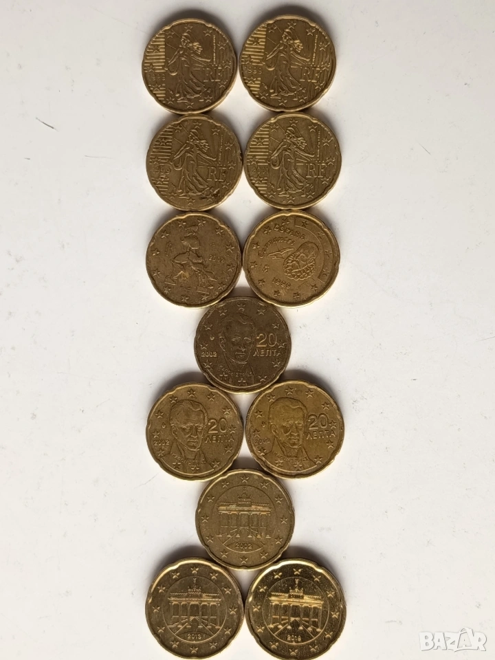 20 евро цента от различни години и държави 12бр.