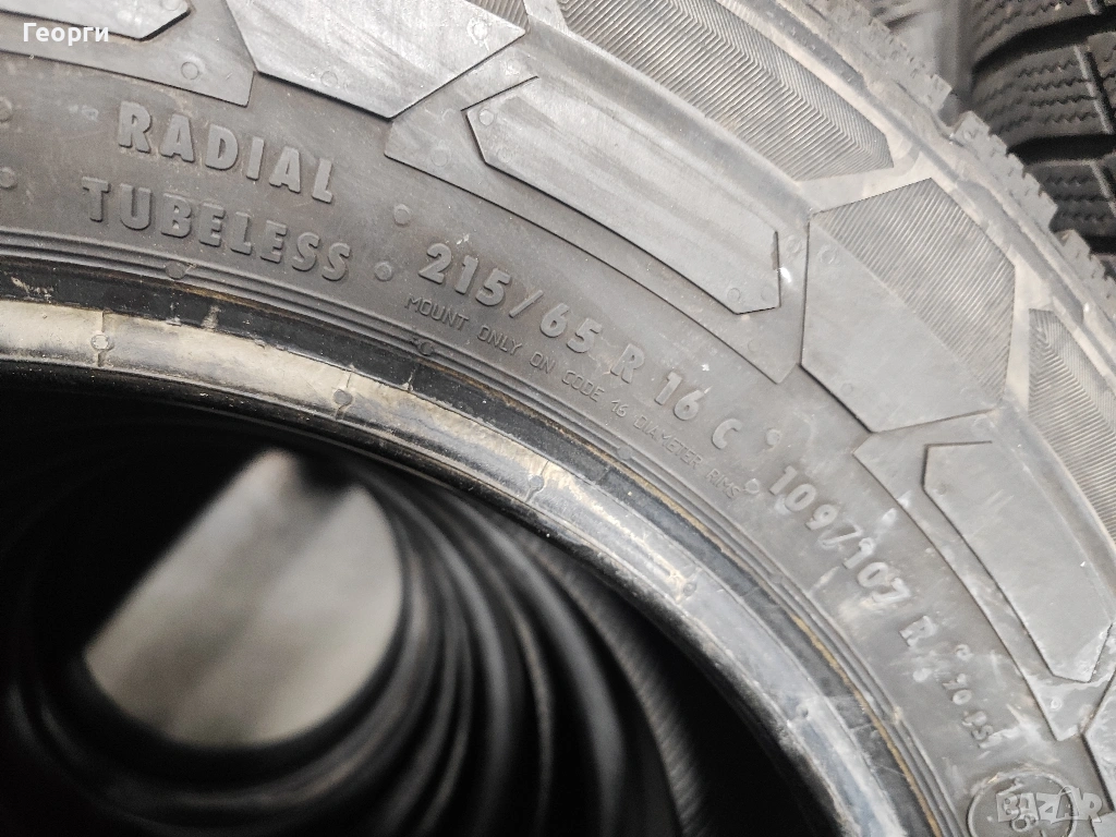 2бр.Continental 215/65/16C, ДОТ 4724, 7.9mm грайфер, цената е за 1бр. Гумите са перфектни, без забележки, проверени са машинно за кривини, балони! Разполагаме с всякакъв размер нова и втора употреба гуми от 14-22 цола за автомобил, джип и бус.