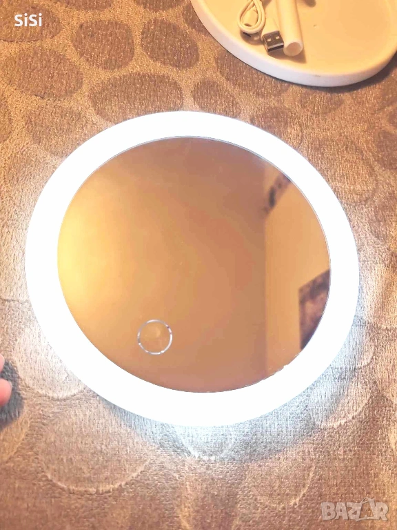 Козметично светещо огледало,ново. Диаметър на огледалото 14см,зарежда се с usb, ротация 90градуса