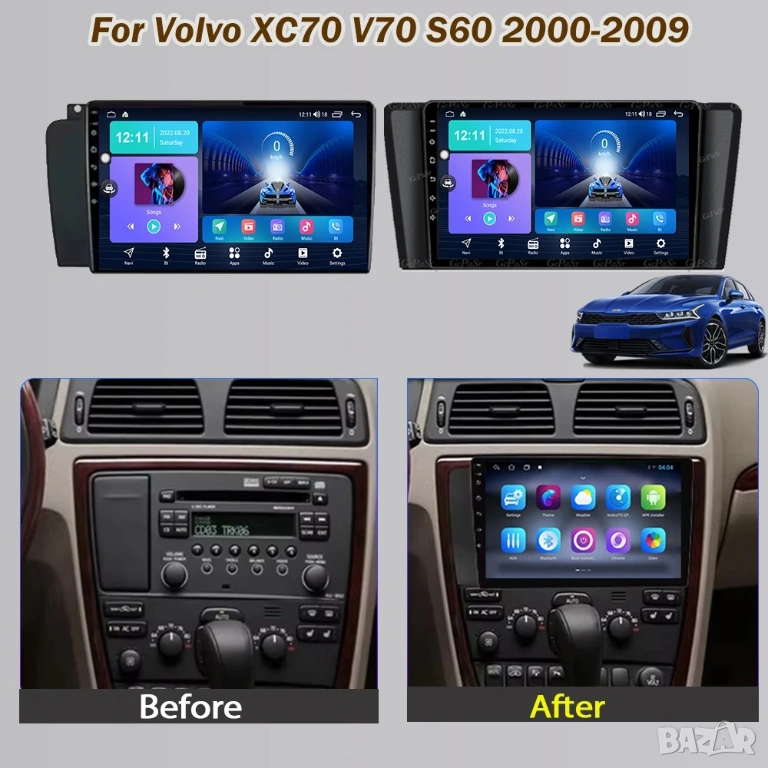 Мултимедия с Android за Volvo XC70, V70, S60, Андроид, навигация, плеър, Волво, двоен дин, 2004-2007